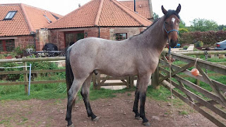 Three year old Colada has been away with Steven Renton being backed and Gemma went up and had her first sit on her today. Gemma's first ride after being on maternity leave went well and she says Colada has a really lovely trot. Colada is home for a few more weeks hacking them she will be turned away again to finish growing.